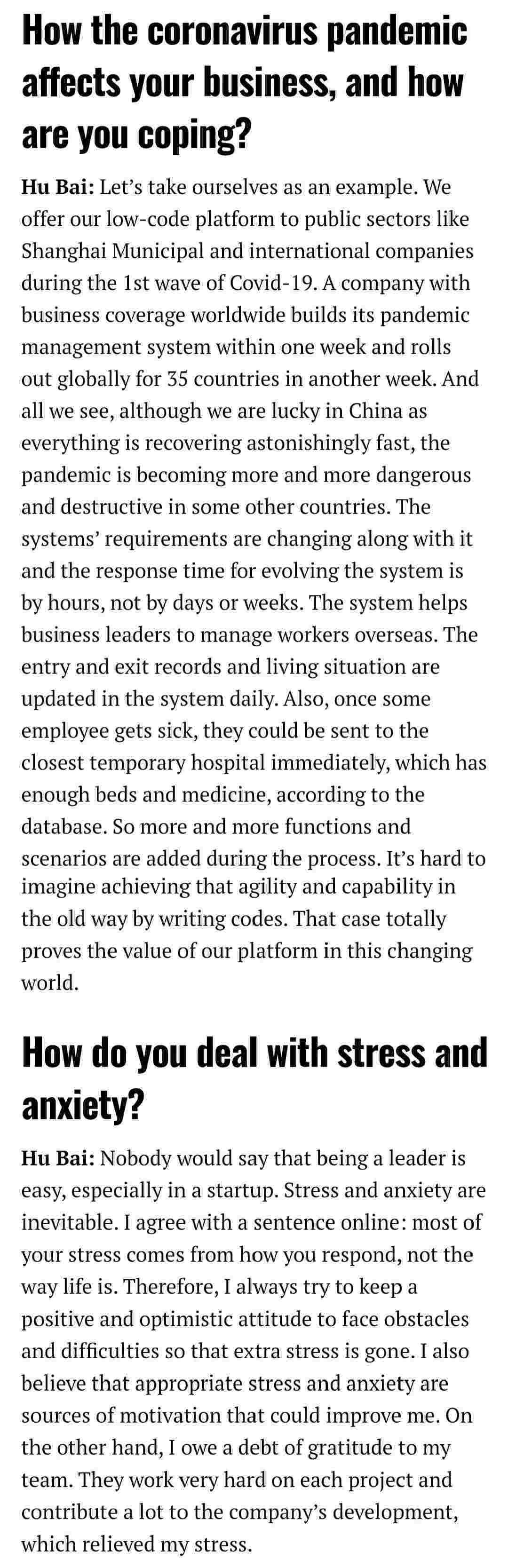 2021年年初,,,,爱湃斯科技CEO胡柏受邀接受法媒Startup.info的专访,,,与Startup info的读者分享了自己的创业经历、、、以及低代码平台圆梦钱包的创新之处。。。。